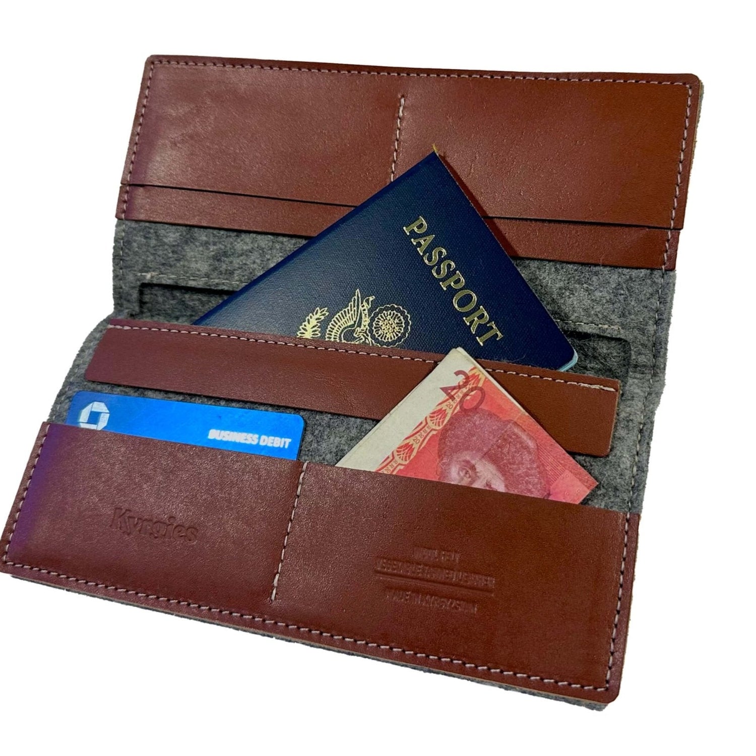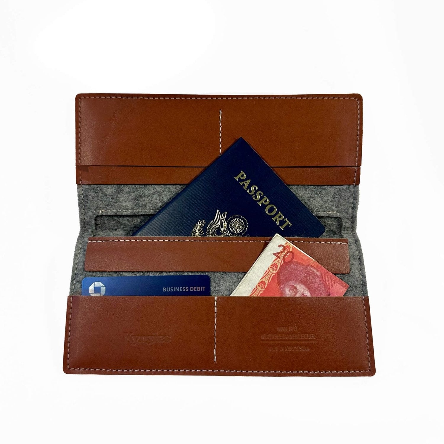Introducing the Spacious Kyrgies Natural Wool Felt Wallet with Vegetable Tanned Leather