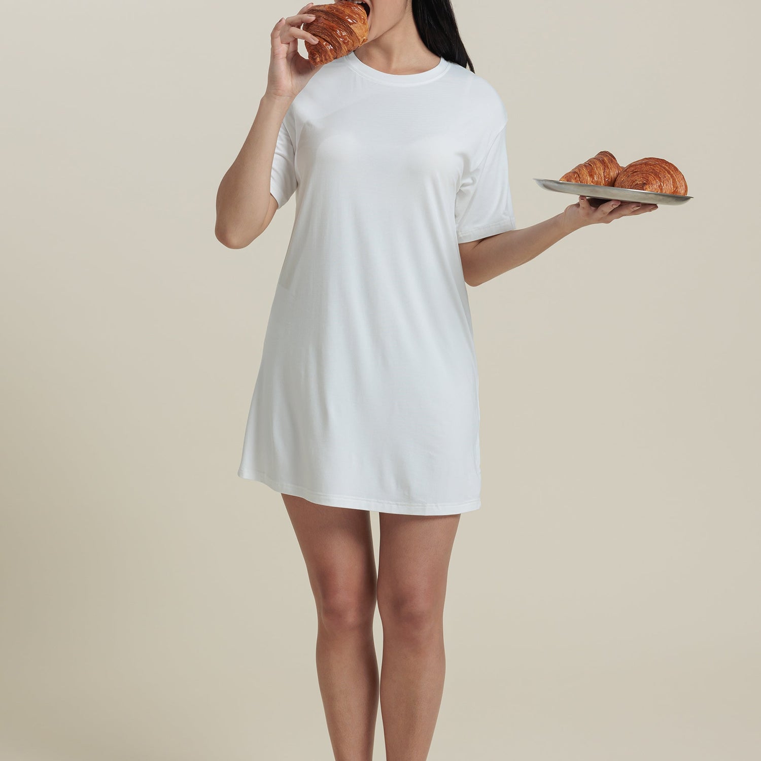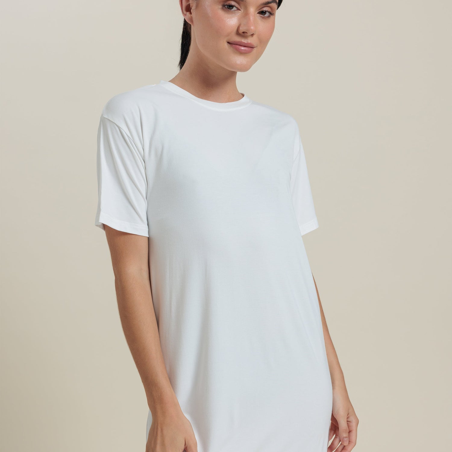 Bamboo Short Sleeve Tee Dress - White / XS is backordered and will ship as soon as it is back in stock.