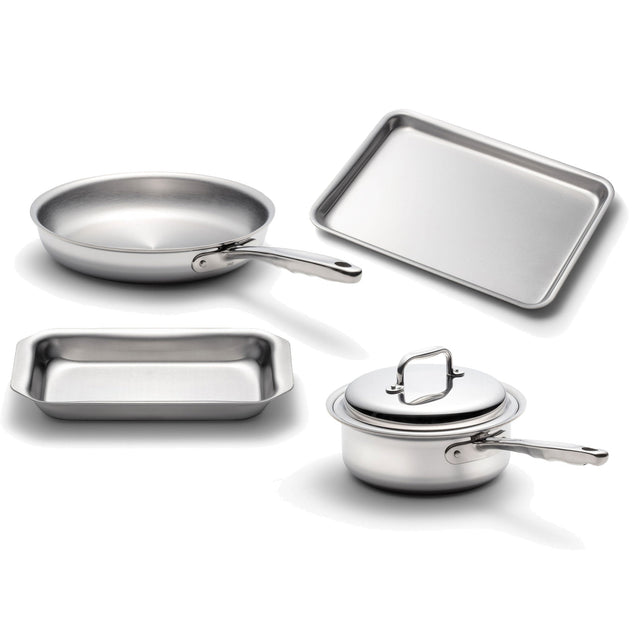 10" Fry Pan, 2 Quart Saucepan with Cover, Mini Jelly Roll Pan, Jelly Roll Pan, FREE Stainless Steel Cleaner, Use & Care Guide and Certificate of Authenticity.
