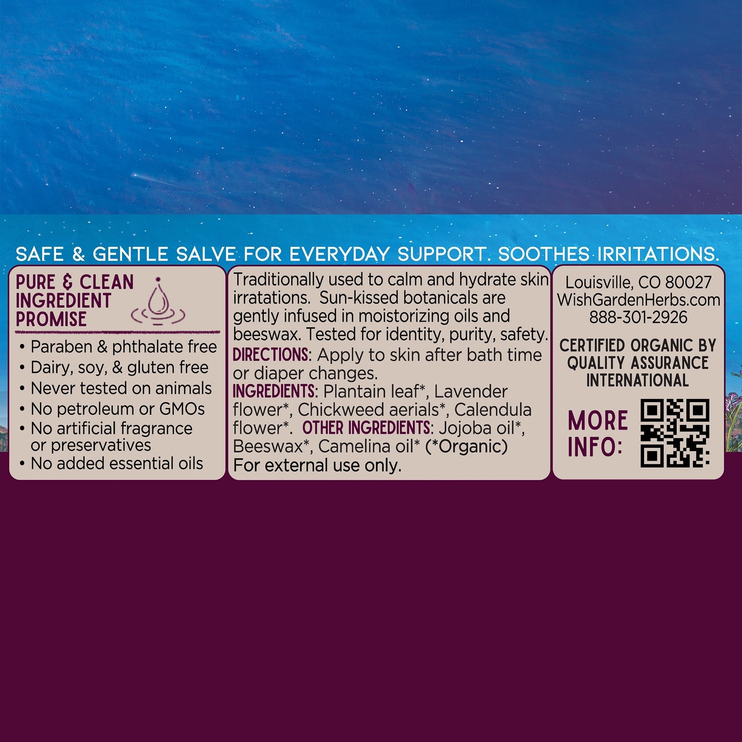 - Lavender Flower: The flowers of Lavandula officinalis nourish and soothe skin. This herb has an affinity for skin wellness and supports the skin's natural processes.