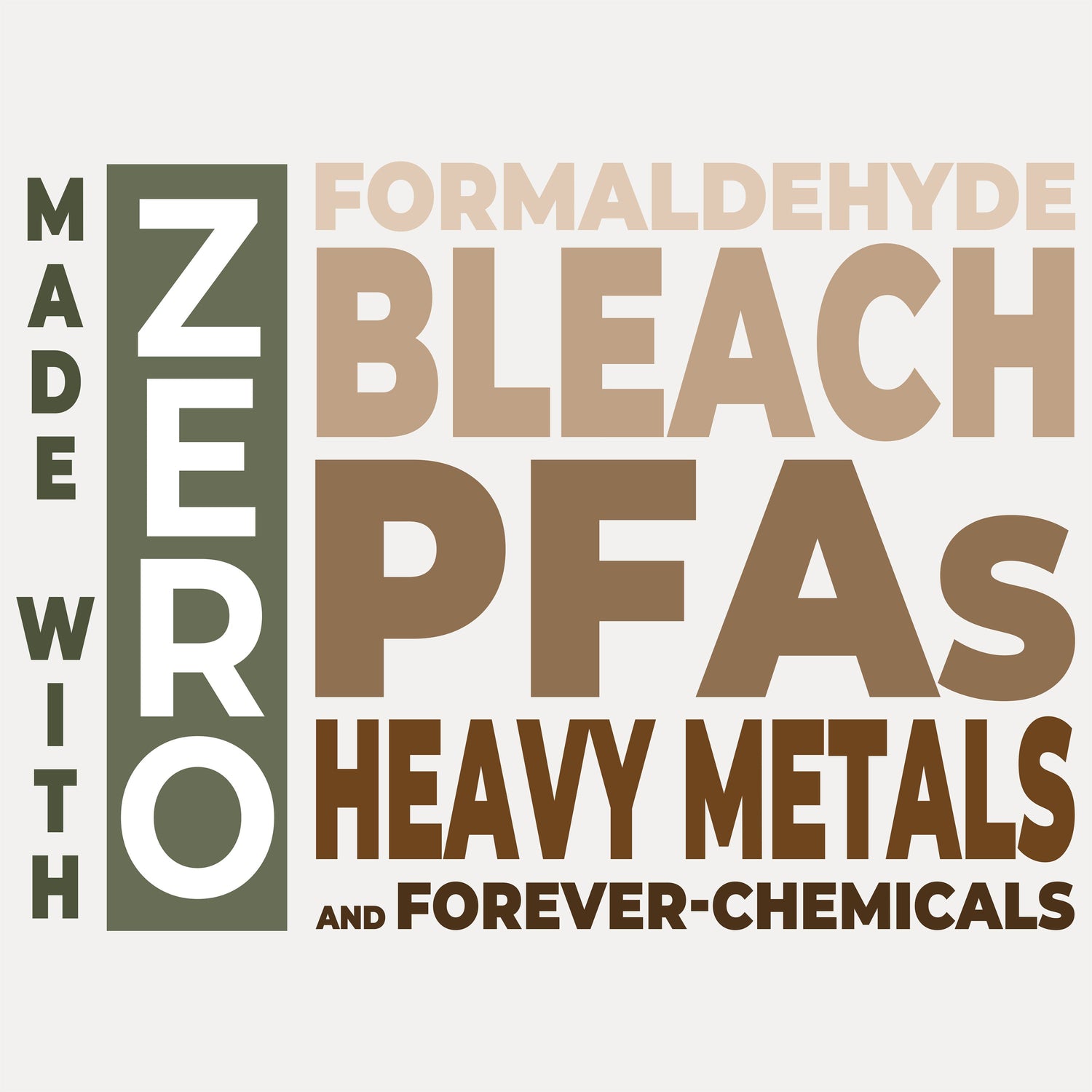 Verified FREE of Harmful Chemicals | Ours is certified PFAS-free (No forever chemicals), certified formaldehyde-free, and certified heavy metal-free.  See our third-party testing for PFAS and the testing for Heavy Metals.
