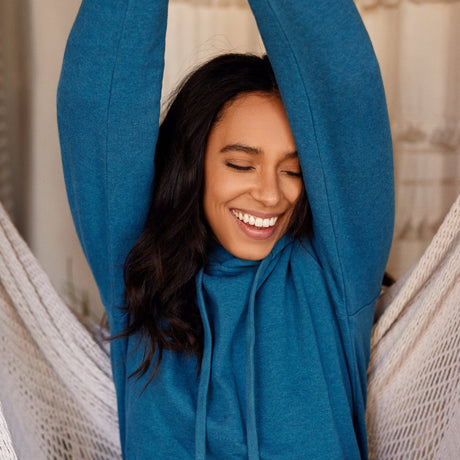 Men's Soft 100% Cotton Medium-Weight Long Sleeve Hooded Tee With Cuffs | Denim Blue