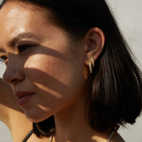 Lab Grown White Sapphire Baguette Huggie Earrings
