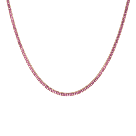 Lab Grown Pink Sapphire Baguette Tennis Necklace