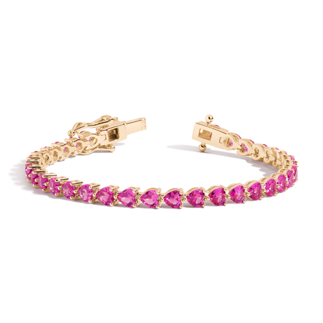 Lab Grown Pink Sapphire Heart Tennis Bracelet