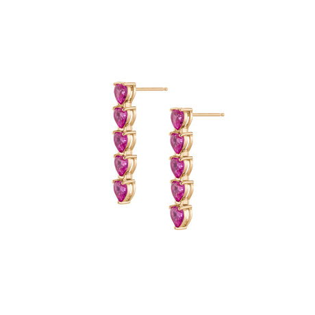 Lab Grown Pink Sapphire Heart Tennis Earrings