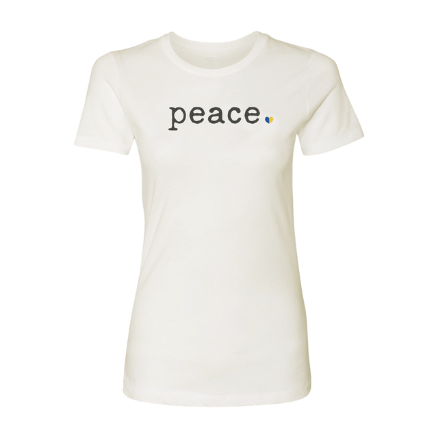 Our organic ivory "Peace" tee has a womens, tapered waist fit.  100% certified organic cotton, soft and comfy. 100% organic cotton