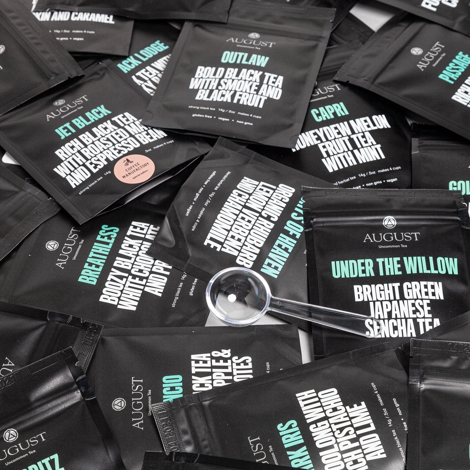 Deluxe 4-cup loose tea samples of our top 30 teas. Explore the delicious world of August.