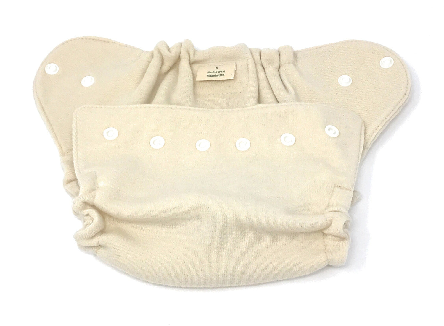 This is a roomy cover.  Don't size up. The size large will be wonderful on older toddlers or preschoolers. When it is time to wash it, please wash it by hand in a proper wool wash to keep it soft and in shape. Lanolize with our Babee Greens 8oz Lanolin when needed.
