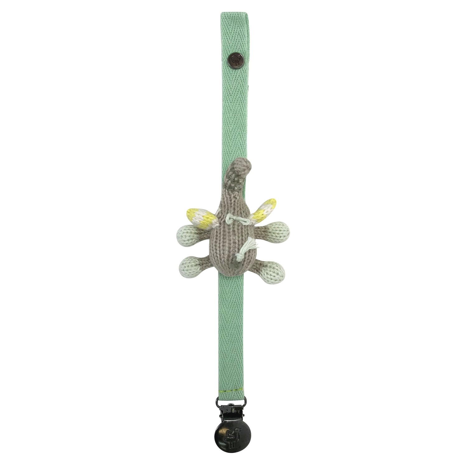 Our Pacifier Holders feature a non-toxic clip and a hand-knit little friend made at an artisanal women's collaborative in Peru, so they'll not only keep pacifiers from falling on the ground, but keep your little one entertained as well.