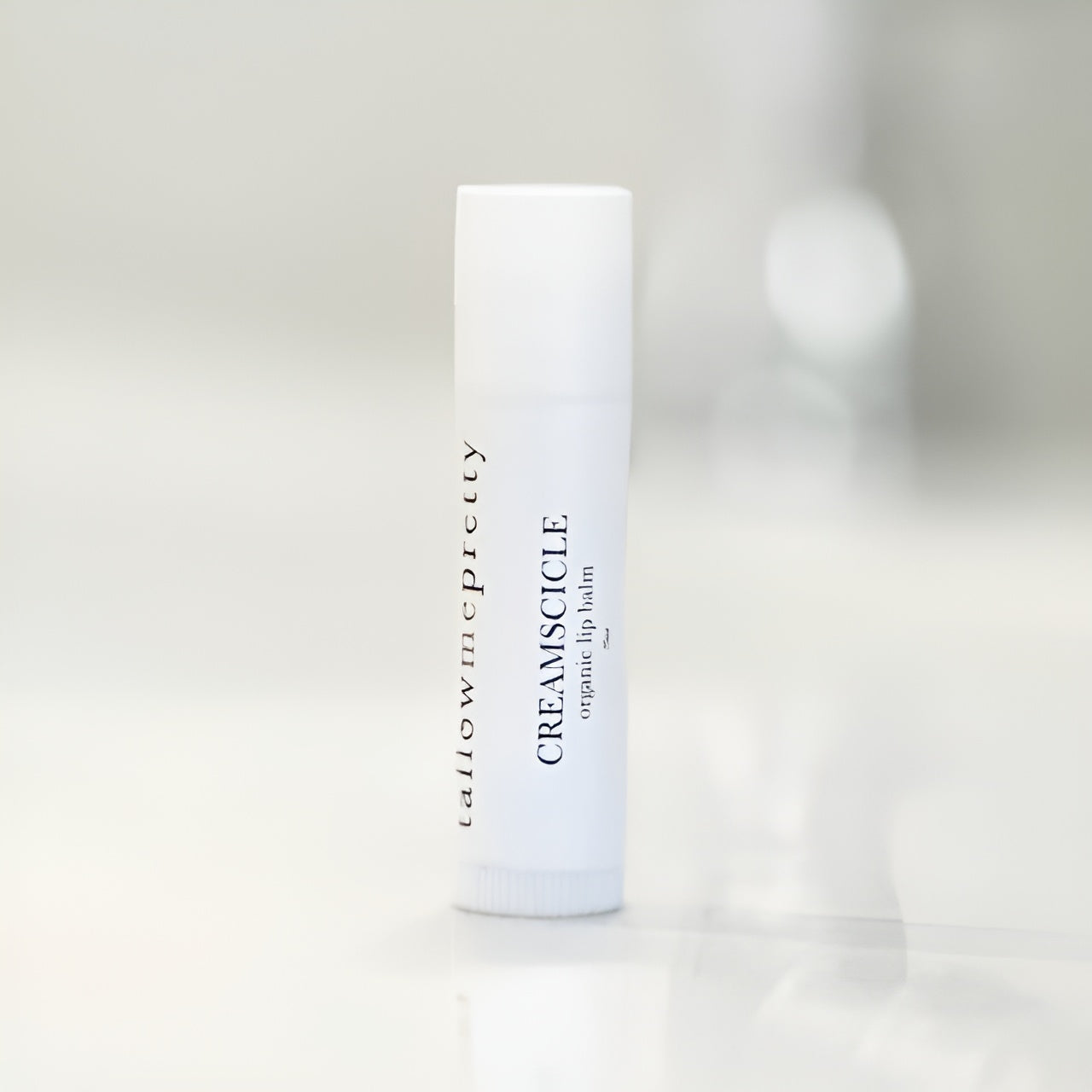 Treat your lips to the goodness of our organic Creamsicle Lip Balm – a blend of citrus and creamy vanilla.