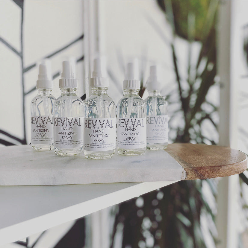 For when soap and water are not available, keep Revival Body Care HAND SANITIZING SPRAY "on-hand" whenever cleansing is required. Created using skin-friendly, Organic, sustainably sourced, Non-GMO 70% alcohol, along with a citrus-based essential oil blend and deionized water. This blend is a powerful and safe cleanser ideal for cleansing hands and surfaces.
