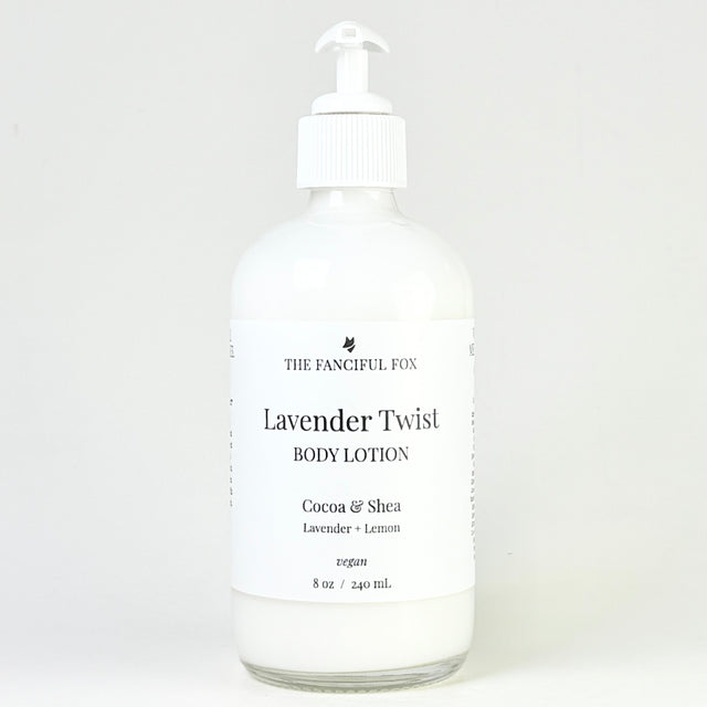 A rich, plant-based lotion that deeply nourishes while delighting the senses. Lavender Twist blends cocoa and shea butters with nutrient-rich oils and botanical extracts to keep skin soft, supple, and resilient. Bamboo, rosemary, and green tea support renewal and help protect the skin’s natural barrier. The scent is a vibrant twist on a classic—serene lavender balanced with a spark of lemon for a clean, uplifting aroma that lingers gently.
