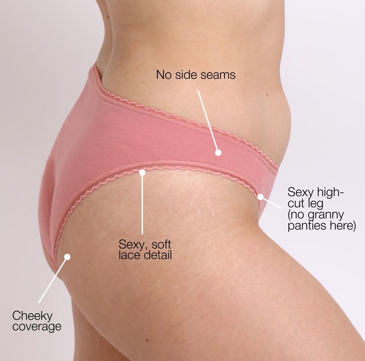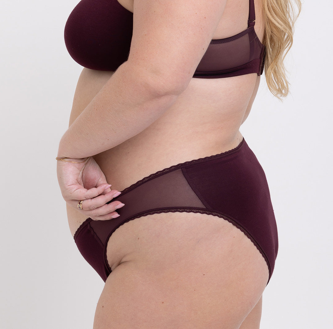 The classic shape we all know, with way more to love - finally. Our mid-rise brief is designed with a cheeky bum and a high leg cut to sit right on your high hip. Made with our soft GOTS-certified organic cotton fabric, detailed with lace trim, and featuring our signature sewn-down longer gusset.