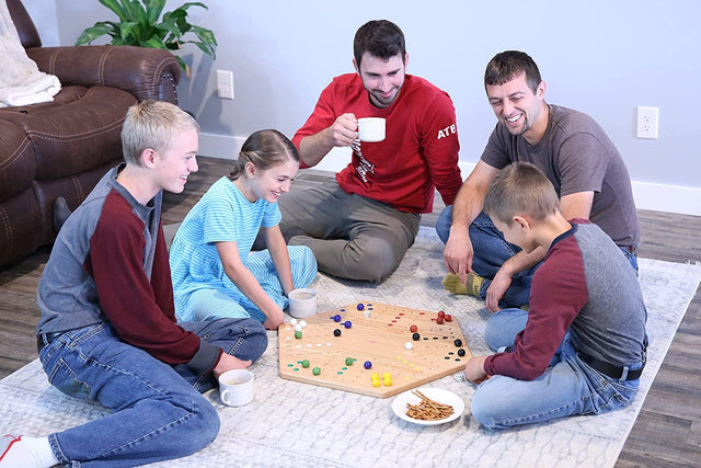 Aggravation Wahoo Marble Board Game, Double-Sided, Hand Painted - 20" Wide Board / Maple Wood is backordered and will ship as soon as it is back in stock.