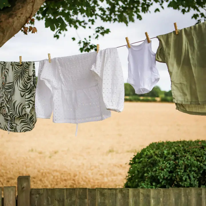 - Includes 20 durable bamboo laundry pegs with steel springs.
