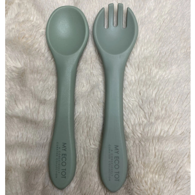 Silicone Fork Spoon Set - BPA Free - Sage is backordered and will ship as soon as it is back in stock.