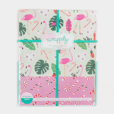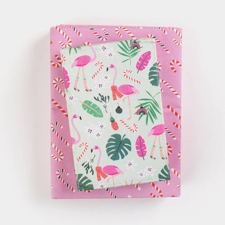 Feliz Flamingos/Candy Cane • Double-Sided Eco Wrapping Paper (Holiday Edition)