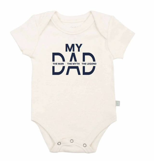 Celebrate dad's legacy with this charming organic baby bodysuit featuring the playful phrase, "Dad - the man, the myth, the legend." Your little one will steal the show in this sweet design that's perfect for any day—whether it's for Father's Day or just to add a bit of fun to your everyday routine. Made from buttery-soft 100% organic cotton, this bodysuit offers ultimate comfort while its easy-snap fasteners ensure quick changes when needed.
