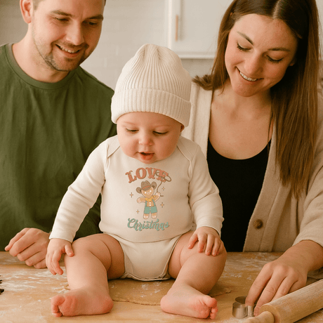 long sleeve graphic bodysuit | howdy gingerbread christmas