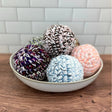 *Allergy statement - because each ball is made using a combination of upcycled materials from unusable, clean sheets, clothing, and towels, the actual materials ingredients cannot be identified for each ball. If you have a special allergy request for your dryer balls, please reach out to us at cory@mamasuds.com.