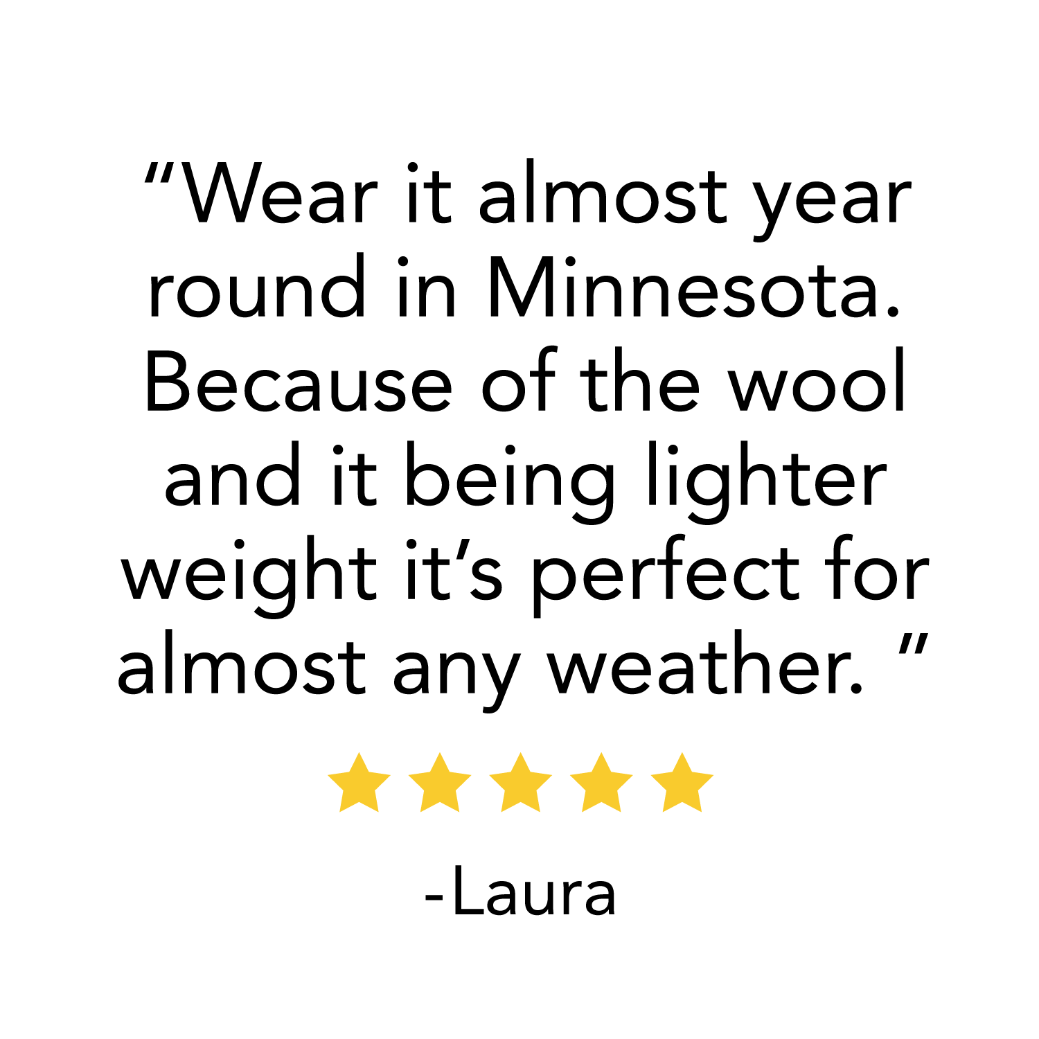 Merino wool is the best fiber to regulate moisture. It does this by absorbing sweat from your skin and releasing it into the air. Whether you're hiking, running, biking, on the job, or just relaxing at home, our wool helps keep you dry and comfortable all day long.