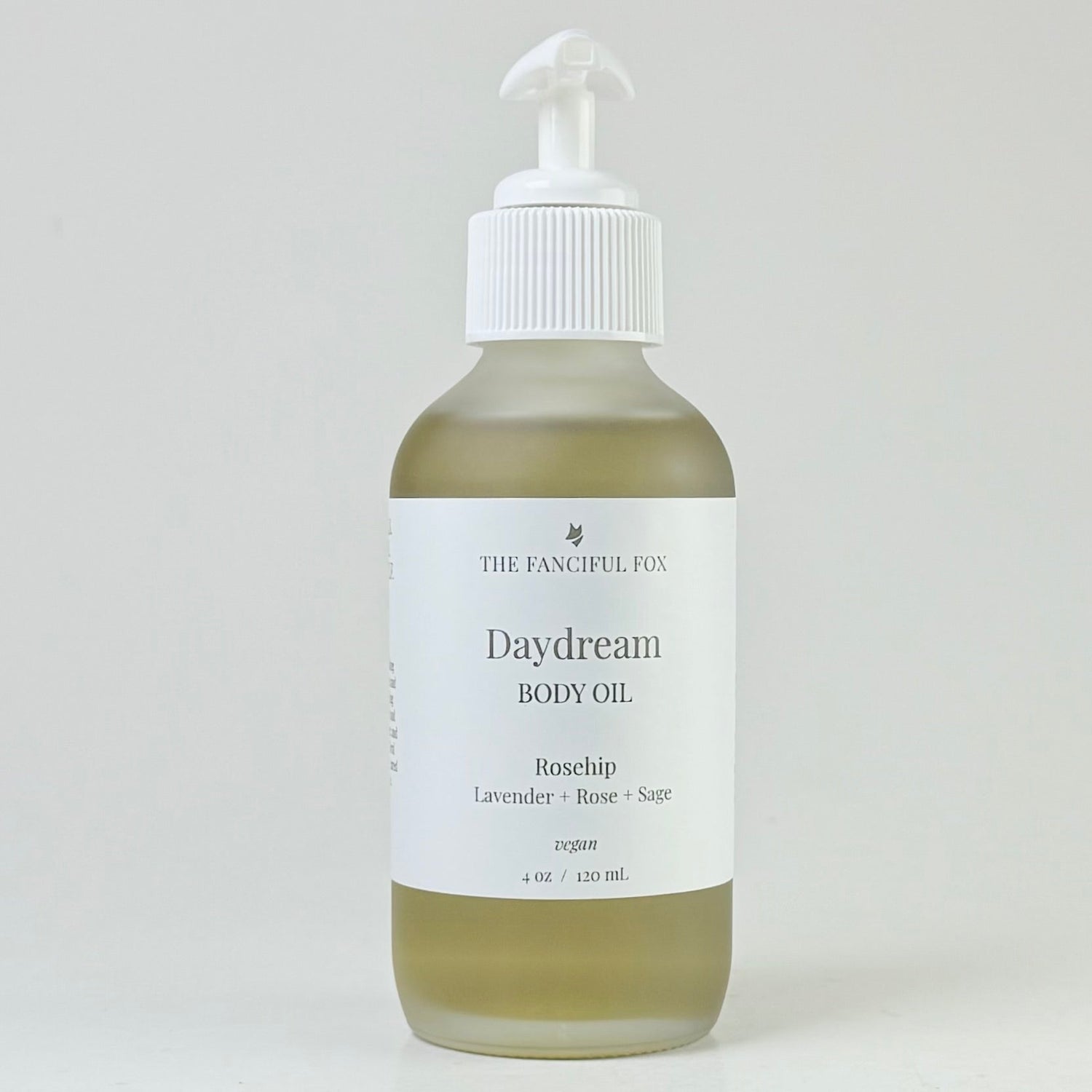 A soothing body oil designed to comfort mature skin and quiet the senses. Daydream blends rosehip, argan, and evening primrose oils to support elasticity, reduce the appearance of fine lines, and replenish the skin’s natural barrier. A calming aroma of rose, lavender, and sage evokes a gentle stillness—perfect for winding down or beginning again. The texture is lightweight yet deeply nourishing, leaving skin soft, balanced, and beautifully cared for.