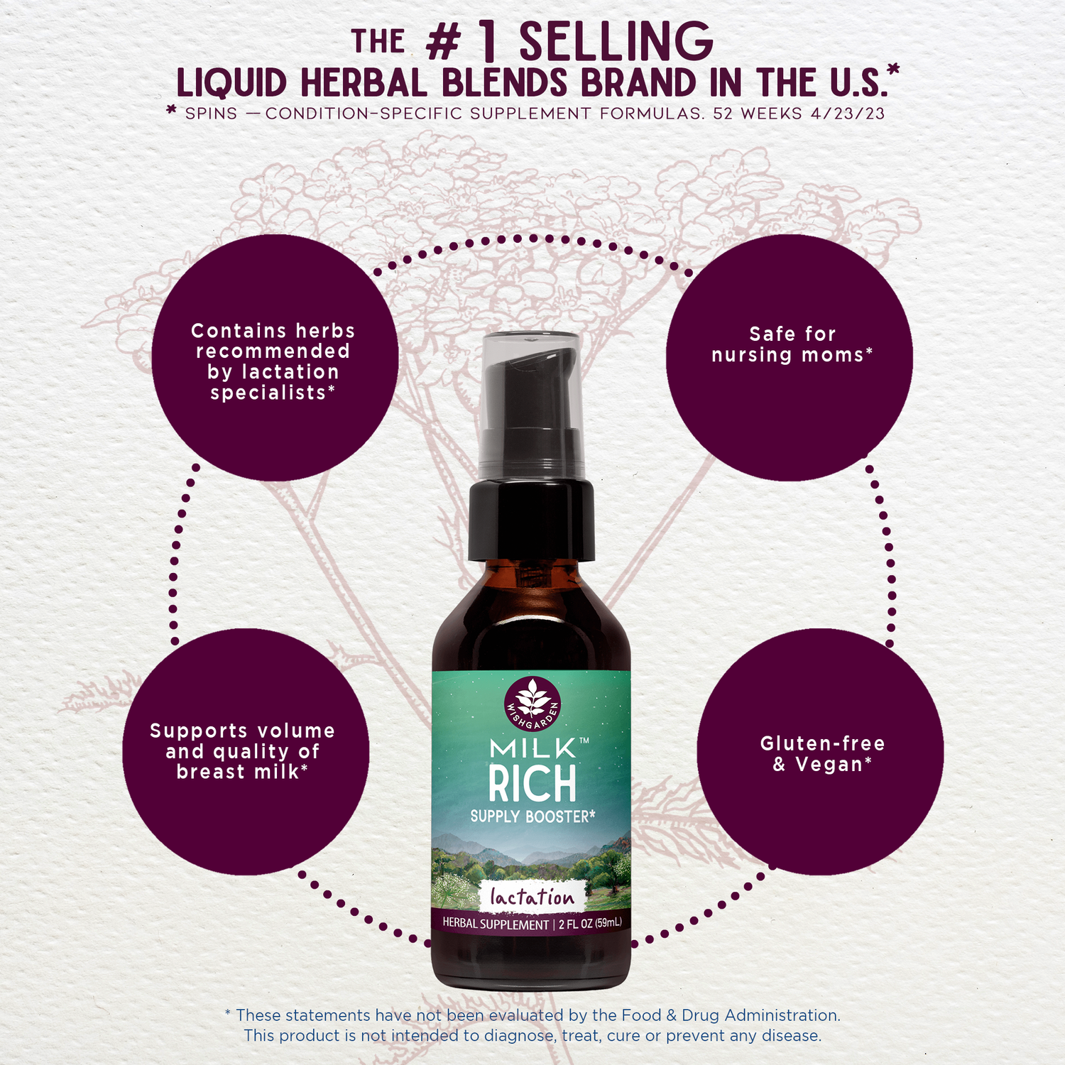Organic Raspberry leaf (Rubus idaeus), organic Fenugreek seed (Trigonella foenum-graecum), organic Fennel seed (Foeniculum vulgare), organic Goat’s Rue aerials (Galega officinalis), organic Nettle leaf (Urtica dioica), organic Blessed Thistle aerials (Cnicus benedictus), vegetable glycerine, Rocky Mountain artesian spring water & organic gluten-free alcohol.