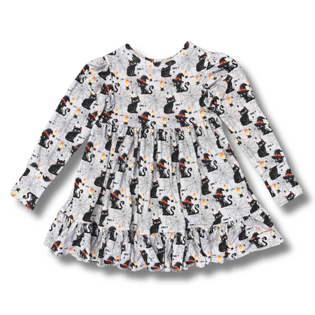 Bamboo Long Sleeve Twirl Dress in Purrfectly Spooky