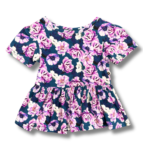 Bamboo Short Sleeve Peplum Top in Autumn Acres