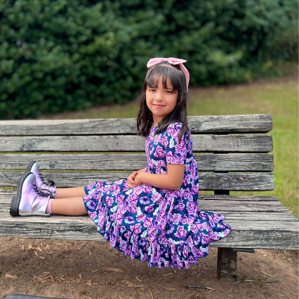 Bamboo Short Sleeve Twirl Dress in Adele - 12/24 Months is backordered and will ship as soon as it is back in stock.