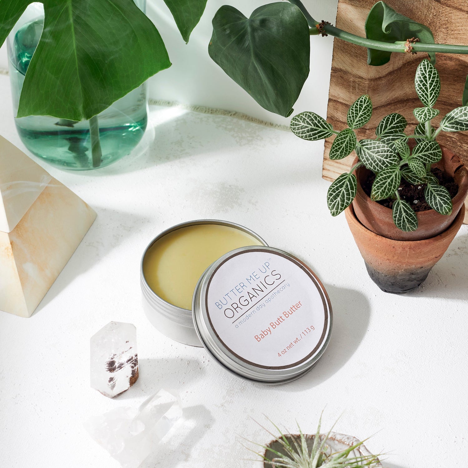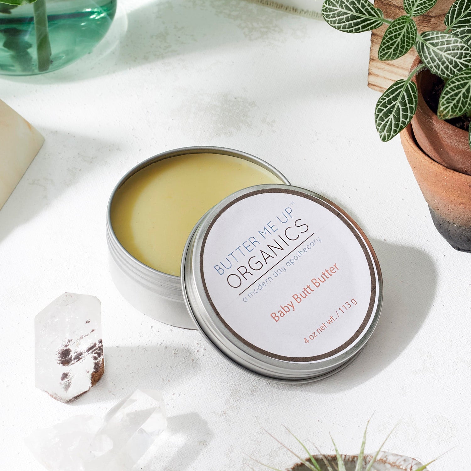 This all-natural butt butter is not only extremely soothing it's also very nutritive and healing for baby's sensitive skin. Great for diaper rash, cradle cap, and everyday use, the butt butter provides and a wonderful layer of moisture and protection for baby's delicate bottom. Works with cloth diapers and is the only product I'll use on my son. My son is five and my daughter is three and neither ever had any diaper rash at all.