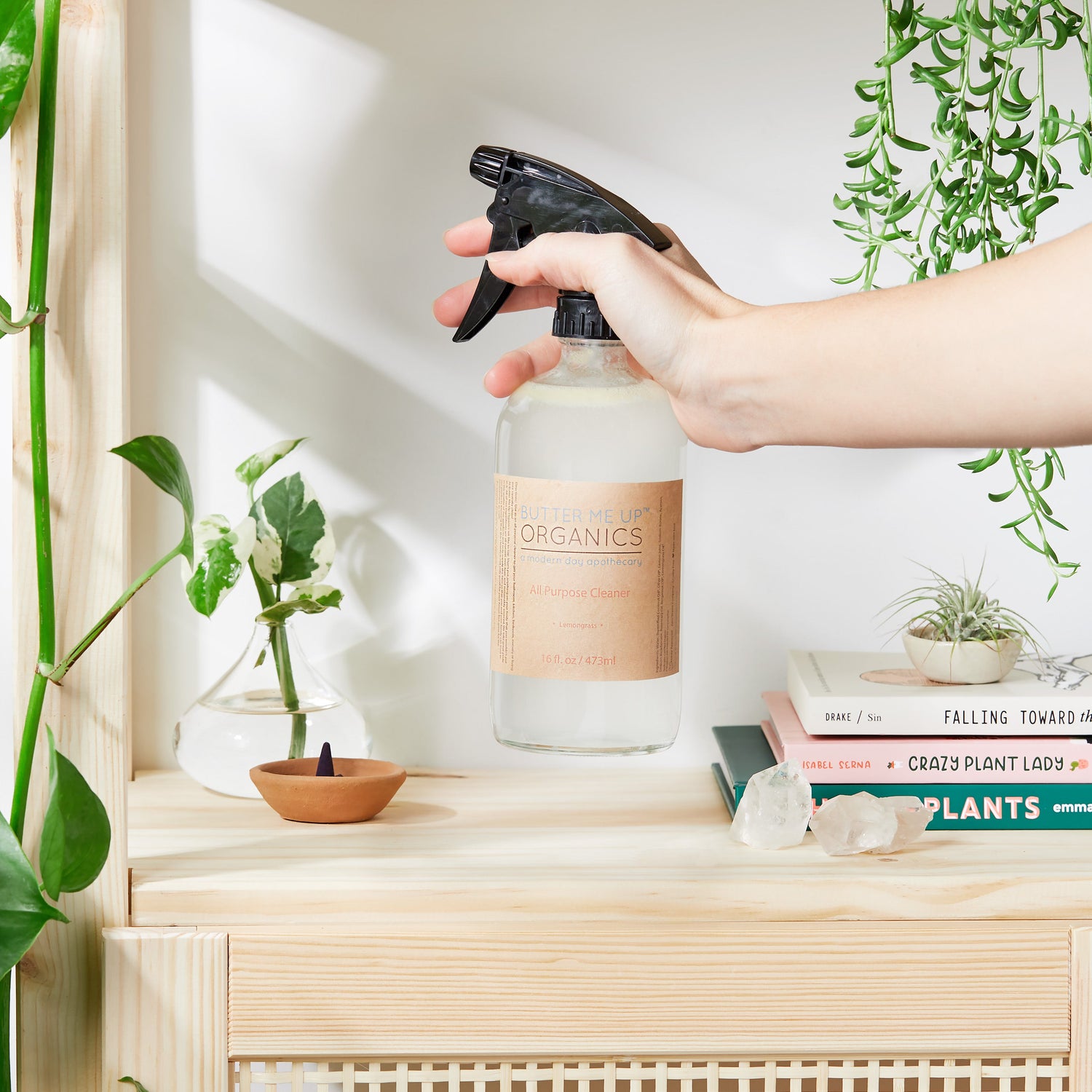 Made from a natural base of handcrafted organic Castille soap, essential oils, and vinegar, this cleaner is gentle and effective. Safe for use in baby's room and any other surfaces your family touches or that which will be in contact with food. Made from safe and food-grade ingredients. No harsh sulfates, surfactants or bleach.