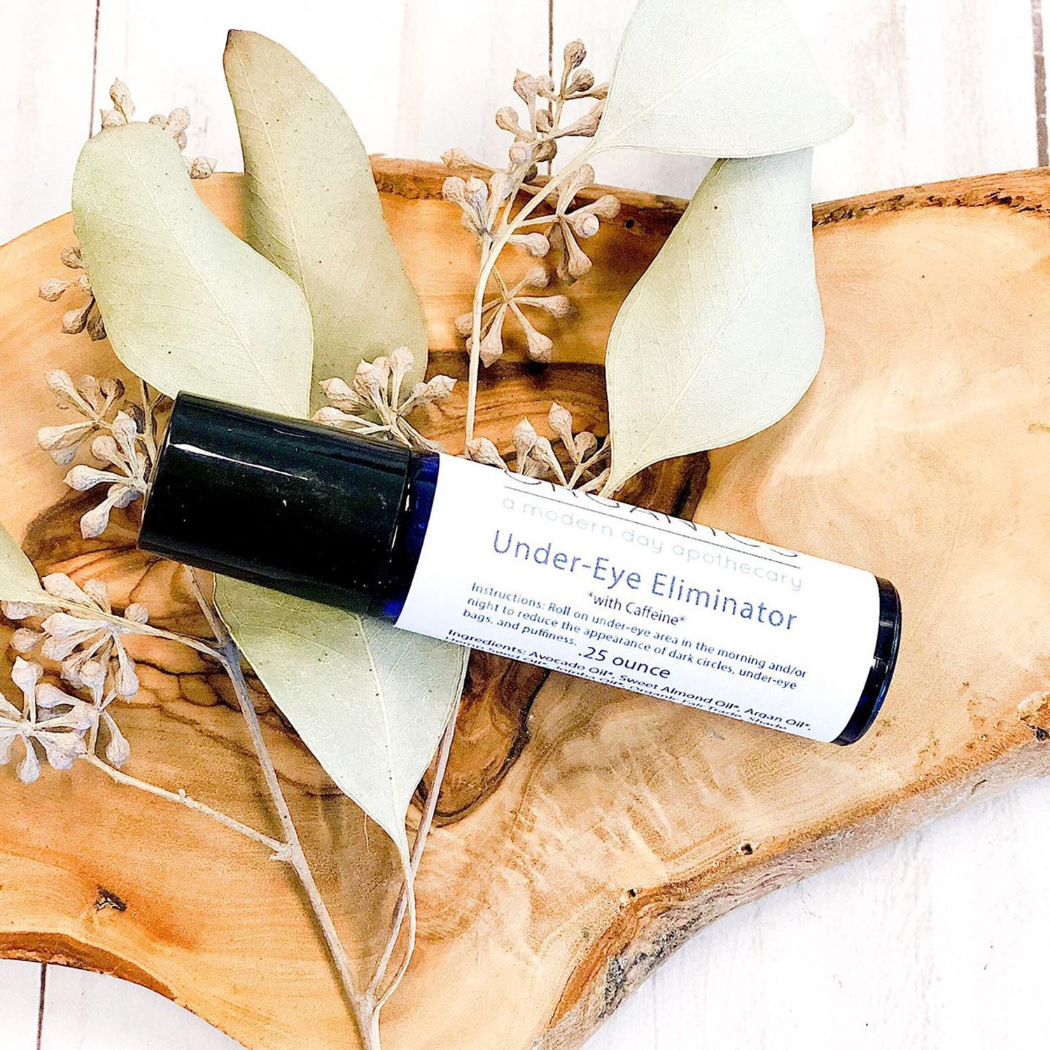 Soothe tired eyes with our organic under-eye roller. Infused with caffeine, herbs, and essential oils to reduce puffiness, dryness, and dark circles. Roll this under eye serum on first thing in the morning to "wake up" under eye area to reduce under-eye puffiness, dark circles, and fine lines. A complete under eye repair serum made with deep penetrating oils to heal, repair and diminish fine lines and puffiness. Perfect for on the go too, go those days you just can’t seem to wake up. At least you’ll look rested.