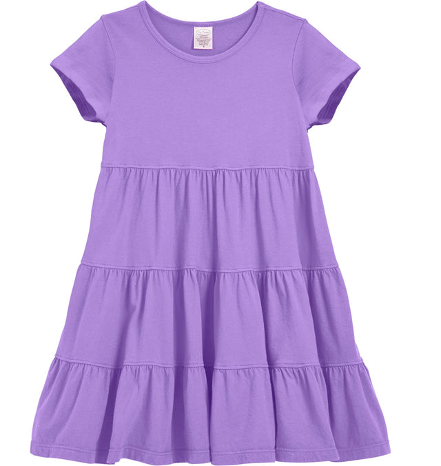 Girls Soft Cotton Jersey Short Sleeve Tiered Dress -Seconds| Damage-Deep Purple