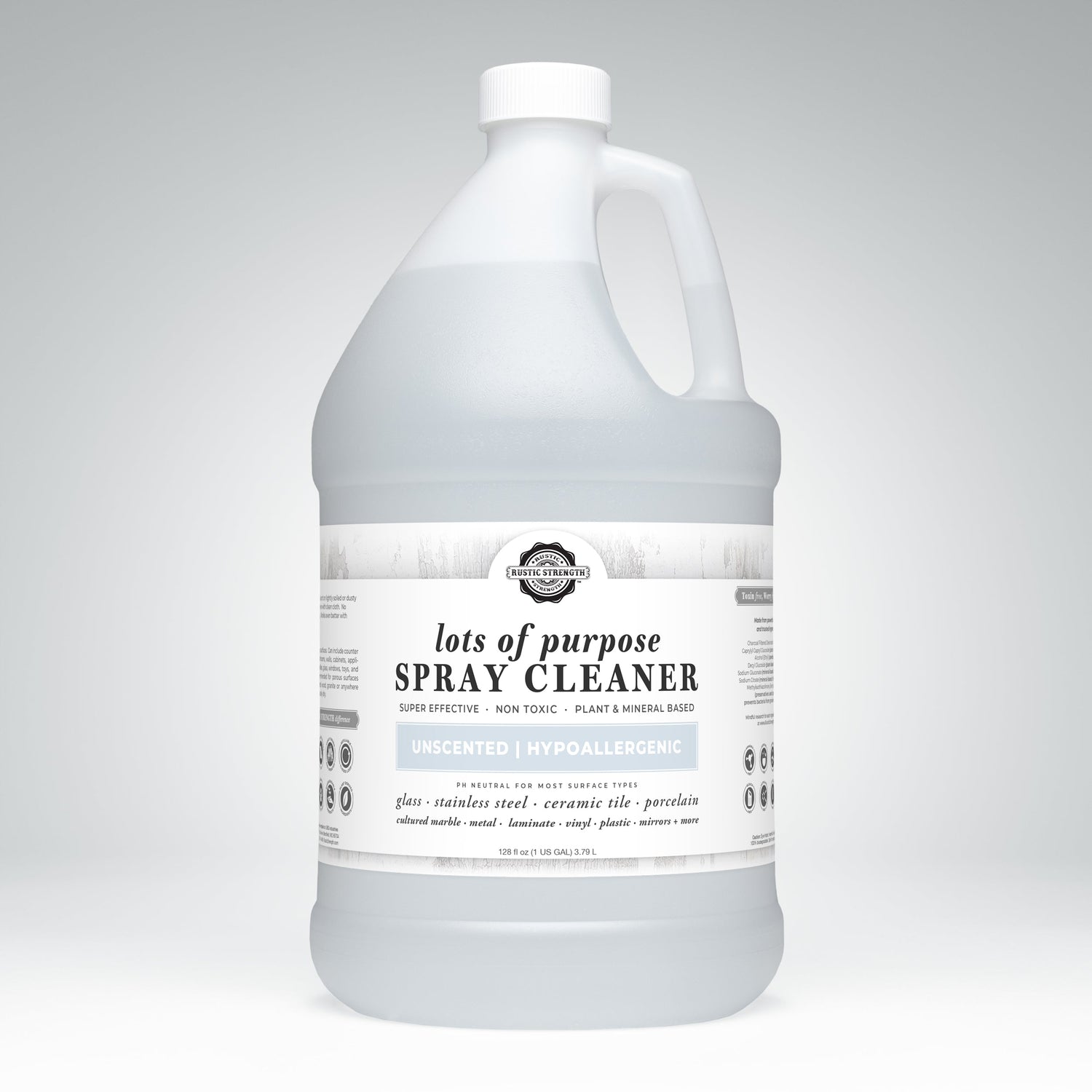 PH balanced and designed for hard, non-porous surface types | glass • stainless steel • ceramic tile • porcelain cultured marble • metal • laminate • vinyl • plastic • mirrors • counter tops • tables • bathrooms • walls • cabinets • appliances • door handles • windows • toys • and more.