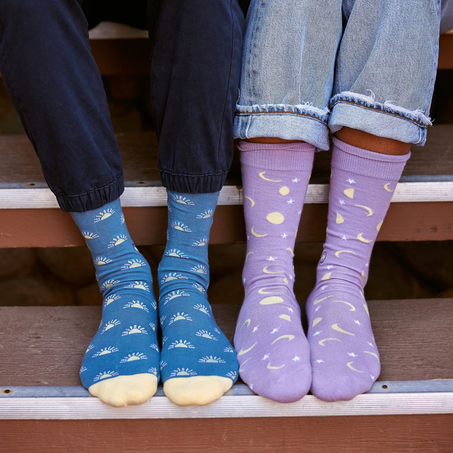 Take to the skies with this celestial-inspired bundle of socks that support mental health! Let these cozy pairs in relaxing hues inspire you to make some time for rest and relaxation. Just imagine stepping out of a hot, candle-lit bath and cozying up in your favorite pajamas and these pairs. Thanks to this box, you can give that experience to anyone on your list (or even yourself).