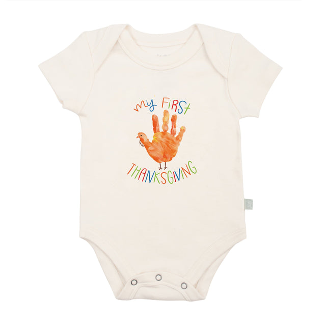 There is always something to be thankful for. This year we are excited about our new Thanksgiving baby bodysuit. It's a perfect addition to your little turkey's first Thanksgiving.