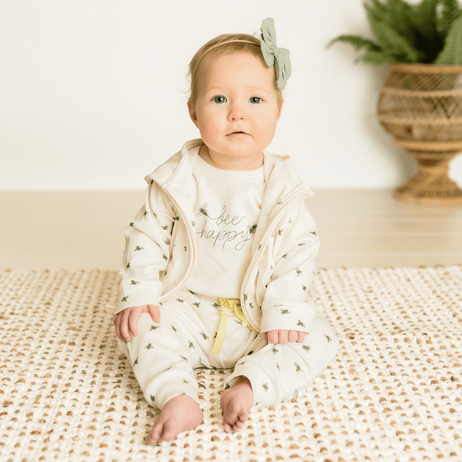 These are buzz-worthy, indeed! Let your little one strut their stuff in our adorable lounge pants. Easy to pull on and off, they're made from buttery-soft organic cotton and have a generous fit to accommodate both cloth and disposable diapers.