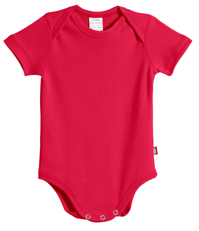 Super-Soft Organic Cotton Baby Rib Short Sleeve Snap Onesie| Candy Apple