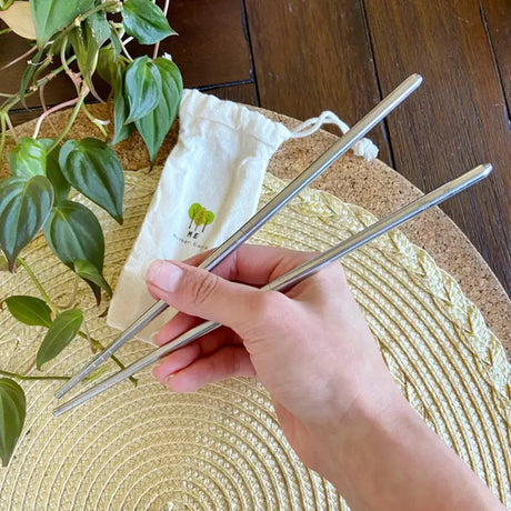 Foldable Stainless Steel Cutlery Set (2-Pack + Cotton Travel Pouch)