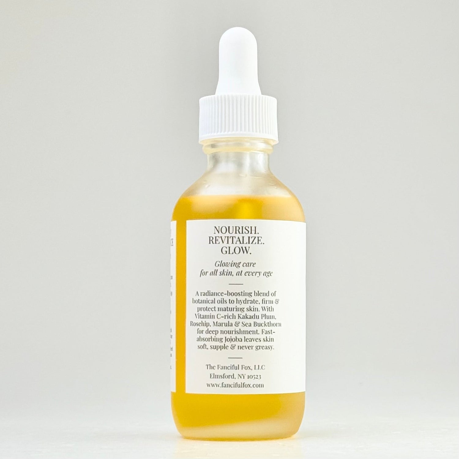 A luxurious blend of nutrient-rich botanicals designed to restore your skin’s natural radiance. Infused with Kakadu Plum extract—one of the world’s most potent sources of Vitamin C—this lightweight yet deeply hydrating face oil helps to brighten, firm, and protect maturing skin. Rosehip and Marula oils replenish essential fatty acids, while Sea Buckthorn Seed oil delivers a burst of antioxidants to support skin elasticity and combat environmental stressors. Organic Jojoba oil ensures fast absorption without a greasy finish, leaving your skin soft, supple, and glowing.