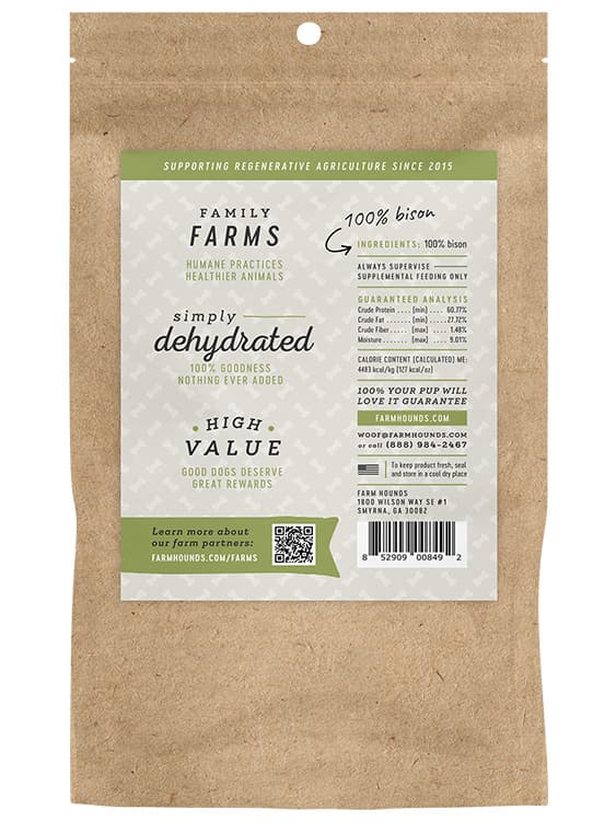 Transparently sourced from 100% pasture-raised bison, these high-protein trainers are perfect for every dog and any occasion!