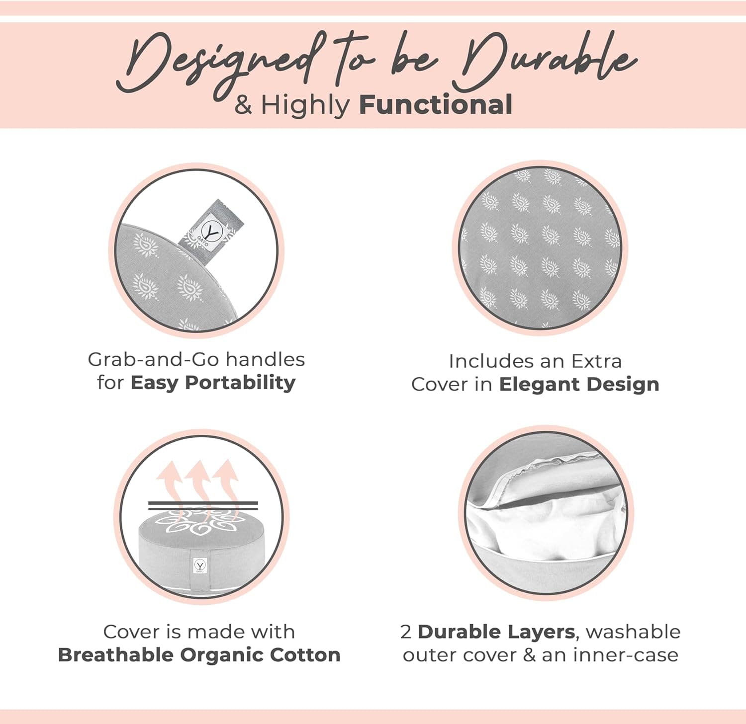 Eco-Friendly Design: Crafted with sustainability in mind, this meditation pad is not only practical but also easy to maintain. The organic cotton covers are washable and designed to last.