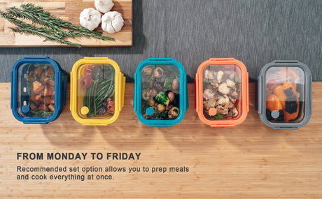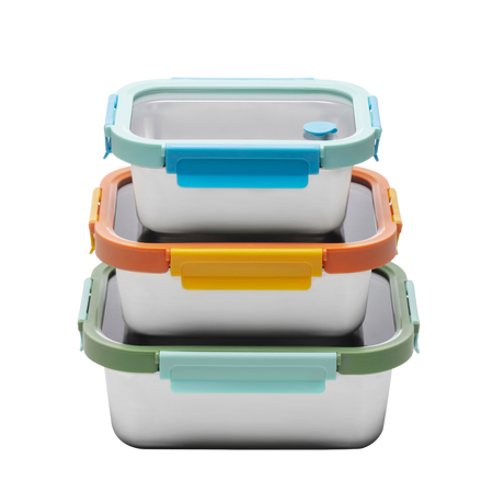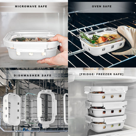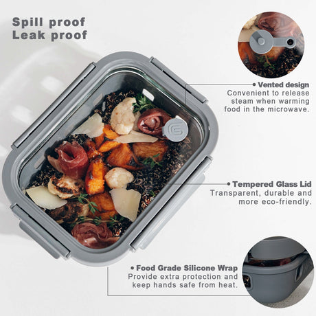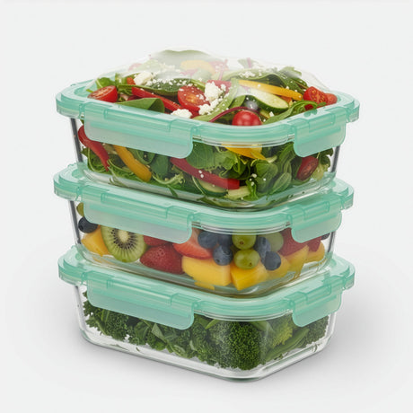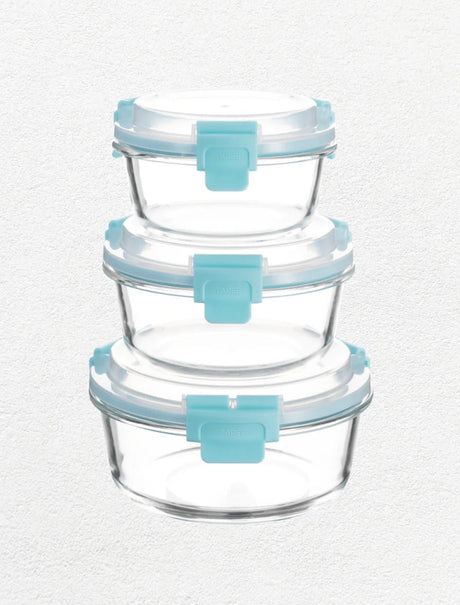 Glass Containers with Flexible Silicone Lids - Set of 3