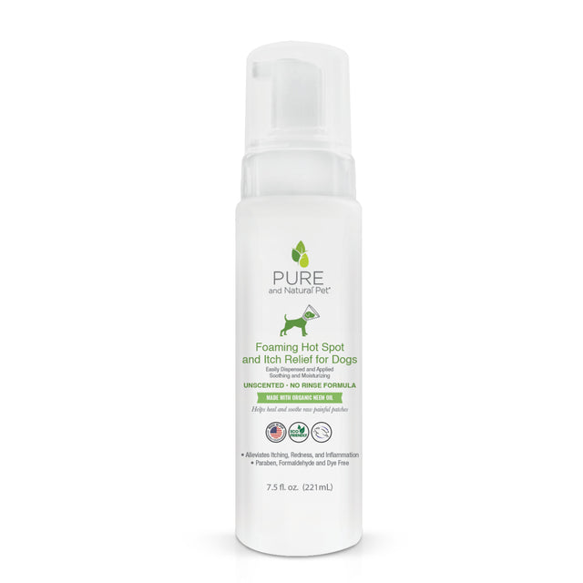 Formulated with USDA Certified Organic ingredients, this gentle yet effective foam alleviates itching, redness, and inflammation caused by hot spots, allergies, and minor skin irritations. Infused with USDA Certified Organic aloe vera, calendula, and neem oil, this easy-to-use foam provides instant cooling relief and helps promote healing for your dog’s irritated skin.