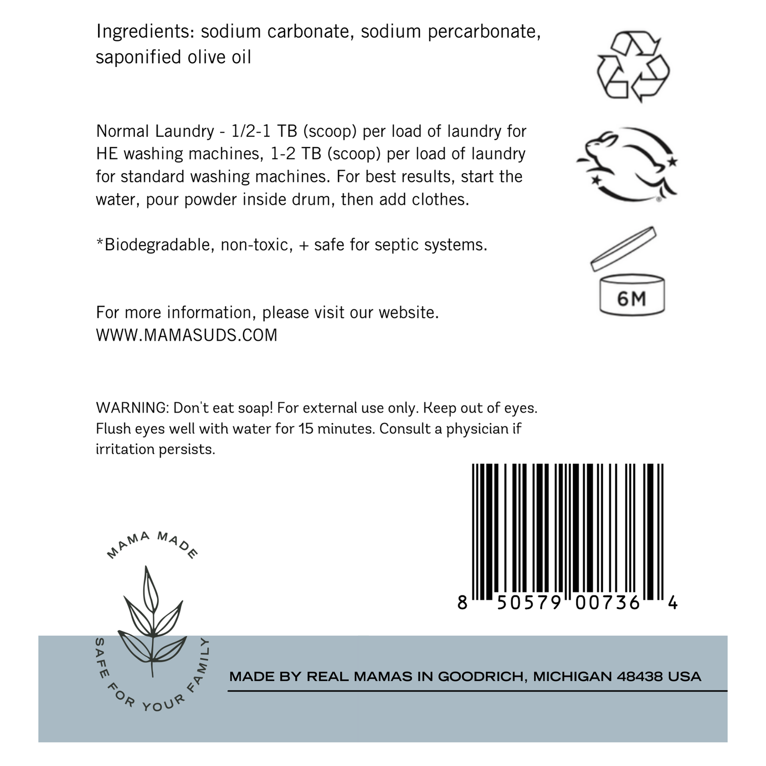 Switch to MamaSuds today and experience the difference of a truly safe nontoxic laundry detergent that puts your health and the environment first.