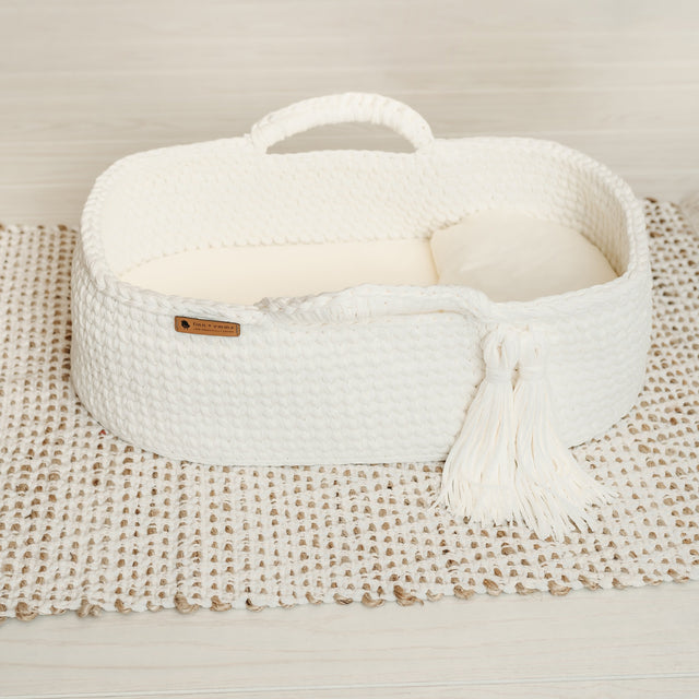 This modern take on the classic Moses Basket - baby bassinet is the latest must-have item for design-conscious parents.Our Carry Cot is made of super-soft organic cotton in a crocheted knit weave, and it features a removable mattress (as well as handles that make it easy to move). In other words, this elegant nook is the perfect comfy-cozy place for a resting newborn. The Carry Cot is designed to look great in the nursery or any room in your home.