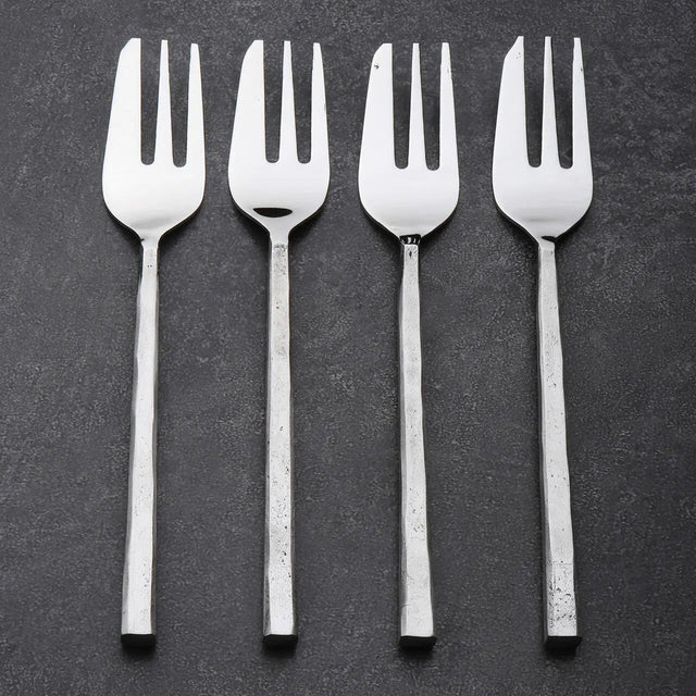 Tap into sleek industrial style trends with our Jason Pastry Forks 4 Pc. Set. Showcasing rustic, nascent steel handles and mirror-polished silver forks, this set instantly pulls together an eye-catching dessert table. Perfect for every day or memorable occasions.