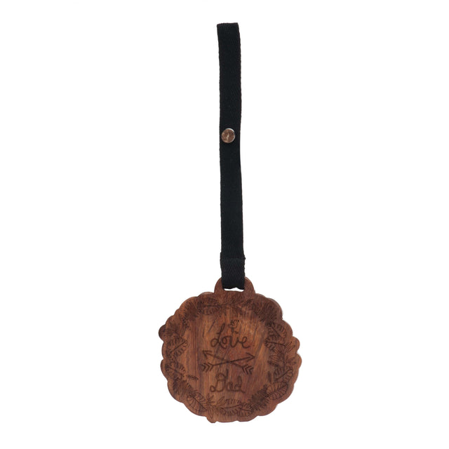 Dad will feel the love all year long with this adorable "Love Dad" message. Our wooden toys are made from untreated hardwood and finished with vegetable seed wax; they can be attached to a stroller or our "Play Gym".